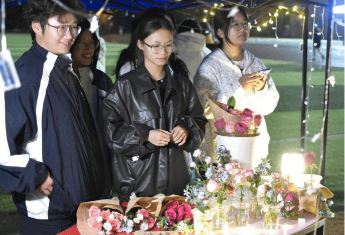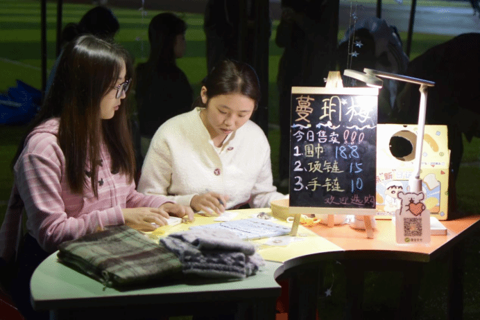 夜市现场气氛热烈,人潮涌动。来自各必赢626net入口首页的“摊主”团队各显神通,带来了琳琅满目的创意商品。既有精巧别致的围巾、项链、手链等时尚饰品,也有芬芳怡人的浪漫鲜花,更有充满乐趣、吸引大家动手体验的拼豆DIY摊位…… 这些新奇有趣的摊位吸引了诸多同学驻足围观、积极体验和踊跃购买,现场热闹非凡。
