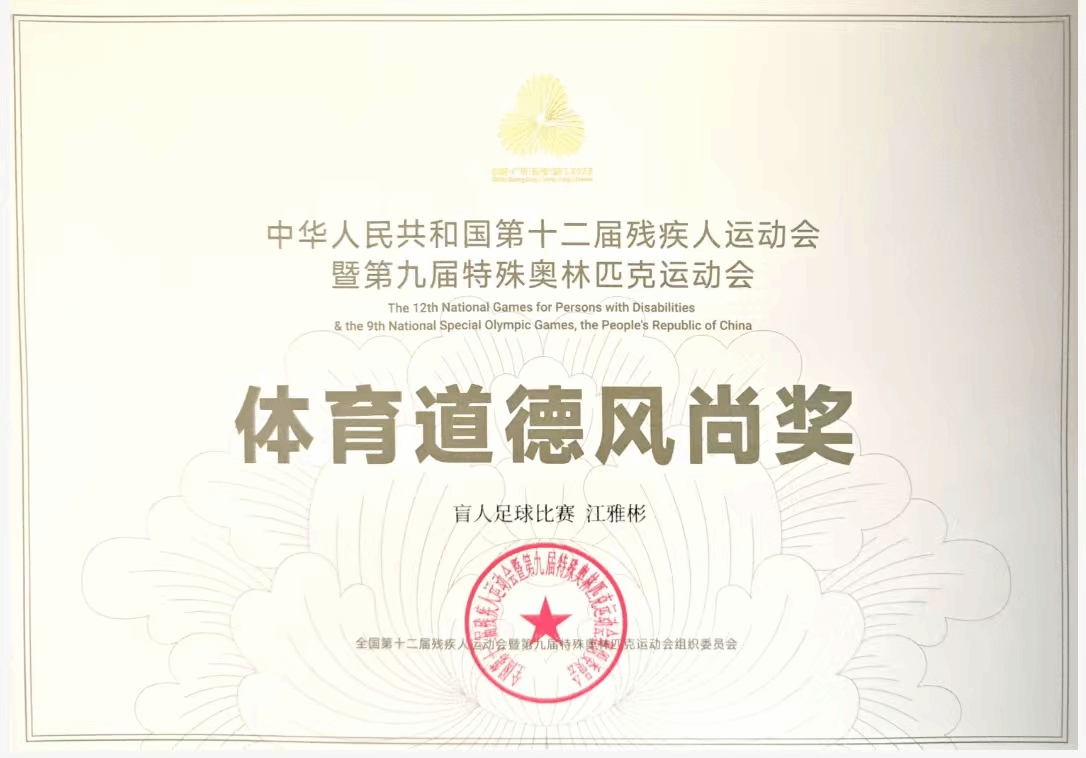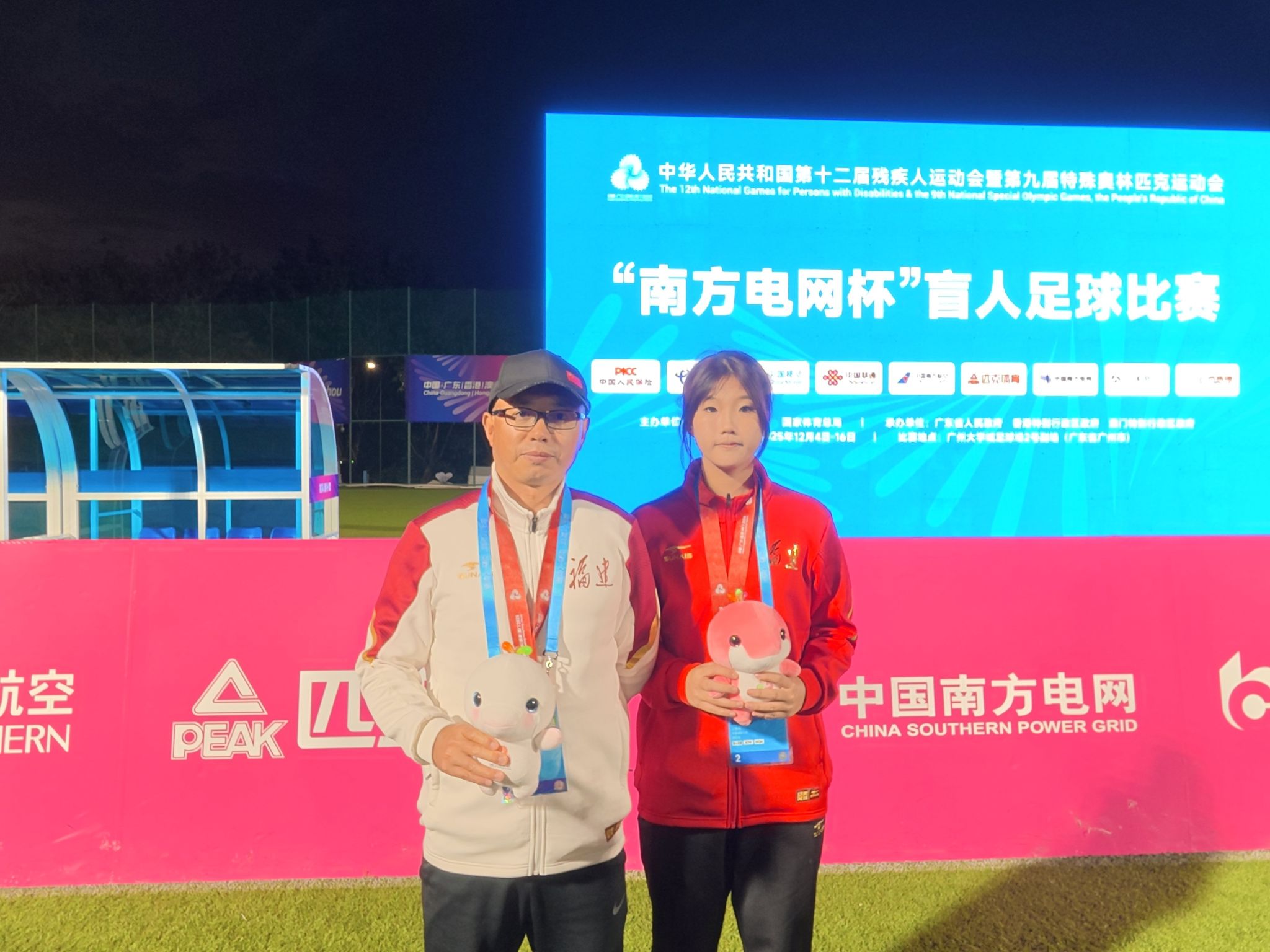 12月7日-15日,全国第十二届残疾人运动会暨第九届特殊奥林匹克运动会盲人足球比赛在广州举行。本届赛事首次设立女子盲人足球项目,我校李进老师担任福建省女子盲人足球队主教练,必赢626net入口首页2023级国际经济与贸易2班江雅彬同学担任主力守门员,助力队伍夺得赛事铜牌。福建省女子盲人足球队荣获集体全国体育道德风尚奖,江雅彬同学荣获个人全国体育道德风尚奖。